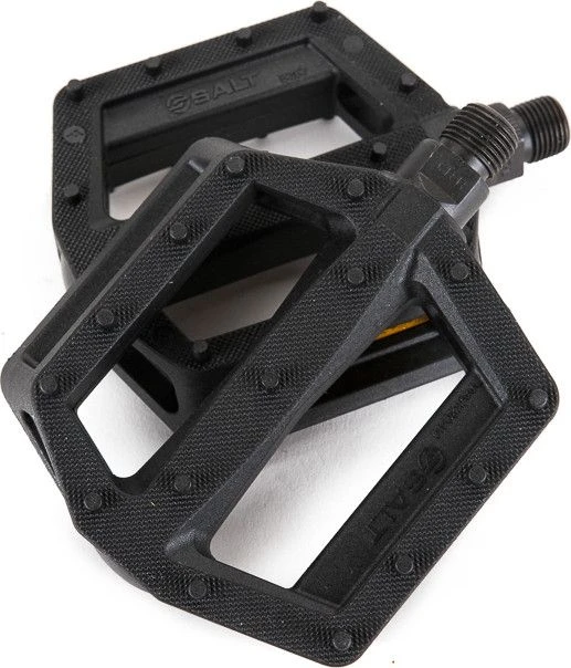 - Features: new shape for smaller feet, knurled surface and extra pins for improved traction, removable reflector, crmo axle, strong nylon / fibreglass pedal body