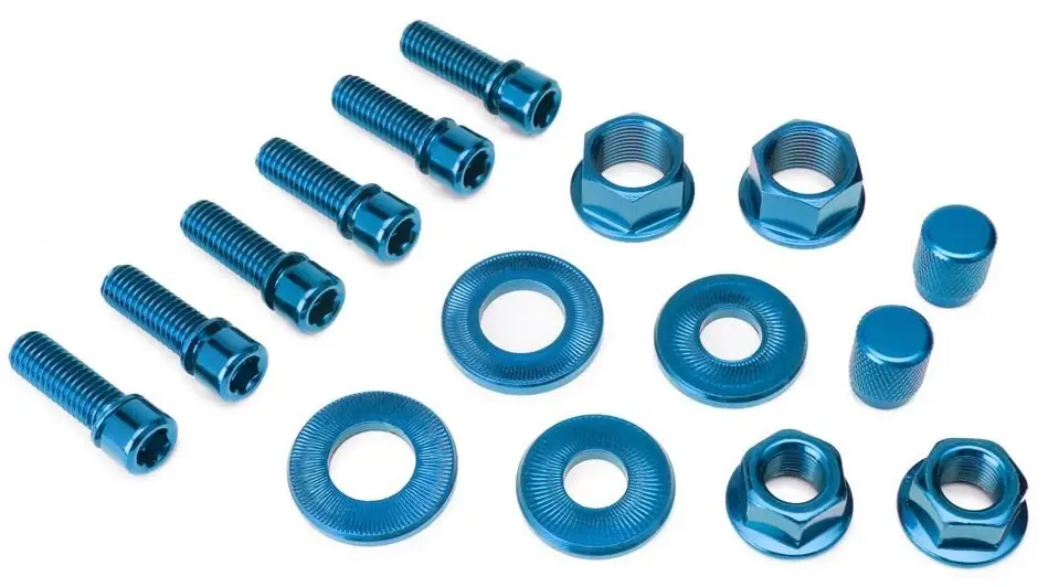 The Nut and Bolt set by Salt is a great mix of crucial spare bolts and nuts, that frequently is replaced and fits on most setups. Keep them as replacements for when needed, or make a subtle color change right away.